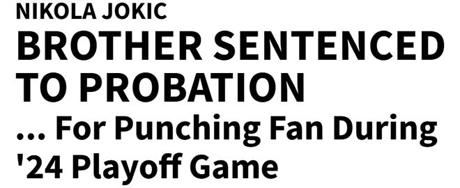 北京时间10月11日,丹佛掘金队球星约基奇的哥哥斯特拉辛贾,因在2024年NBA季后赛期间在看台拳击一名球迷,被判处12个月缓刑。